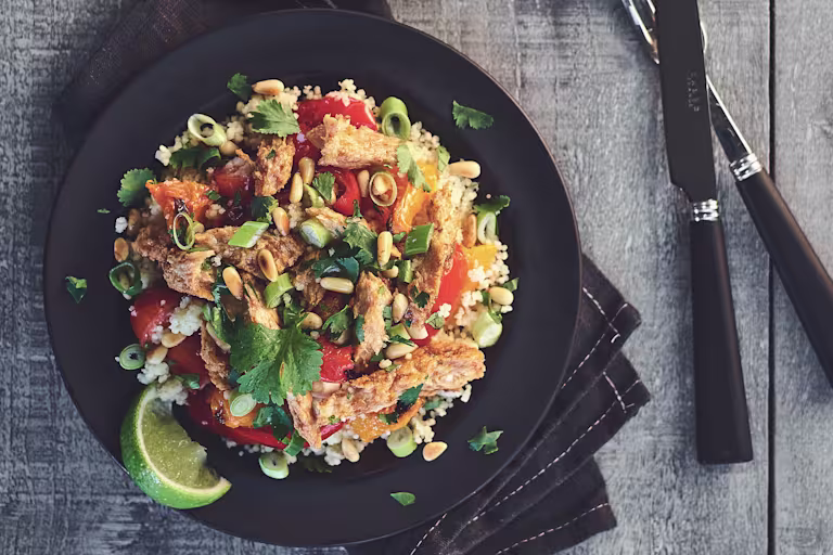 Filets de Quorn sauce teriyaki pour barbecue et Bol du Bouddha à l’ananas